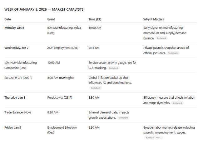 – Los mercados cerraron 2025 cerca de máximos históricos, pero las correcciones a finales de diciembre y un fallido «Rally de Papá Noel» aumentan la sensibilidad a los datos para la próxima semana.