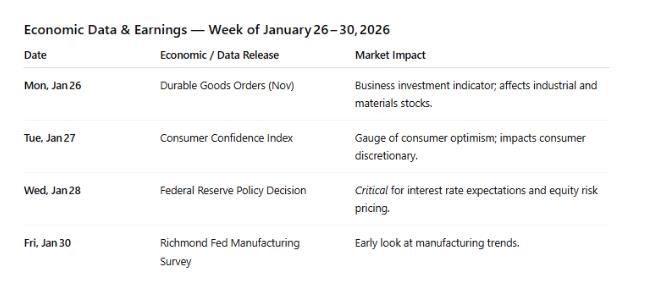 -La reunión de enero de la Reserva Federal, prevista para el 28, se perfila como un catalizador crucial. Con la inflación aún por encima del objetivo y los rendimientos a corto plazo más altos, cualquier cambio en el discurso sobre los recortes de tasas o las expectativas de crecimiento podría impulsar drásticamente las acciones y los bonos. Los informes económicos de principios de semana, como los pedidos de bienes duraderos y la confianza del consumidor, marcarán la pauta, pero son los resultados de las grandes tecnológicas a mediados de semana los que hacen que los operadores se preparen para el impacto.