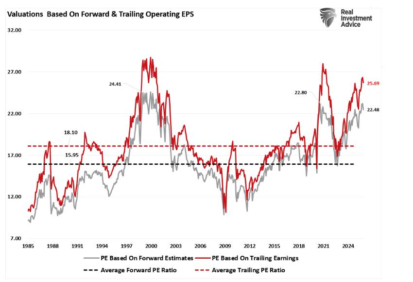 -Las valoraciones no son un buen indicador de tiempo, sino una medida del sentimiento a corto plazo. La ratio precio-beneficio de los últimos doce meses se sitúa en 26, cerca de sus máximos históricos. El ratio CAPE de Shiller, que ajusta la inflación y suaviza los ciclos a lo largo de una década, se sitúa cerca de 39. Las estimaciones de PER para las ganancias de 2026 se sitúan en el rango de 23. Según casi todos los indicadores, las acciones cotizan a niveles que históricamente limitan las rentabilidades futuras.