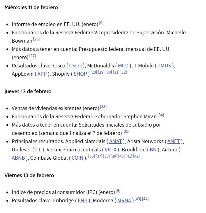 -La próxima semana estará marcada por un calendario macro intenso que puede condicionar la dirección del mercado tras la reciente volatilidad tecnológica. El foco principal será el cambio de fechas en EE. UU.: el informe de empleo de enero se publicará el miércoles 11 y, dos días después, el viernes 13, se conocerán el IPC y las ganancias reales. Estos datos serán clave para evaluar presiones inflacionistas, fortaleza del consumo y expectativas sobre la política de tipos de la Fed.