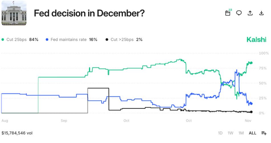 -Los mercados se dispararon durante la fiesta de Acción de Gracias, cerrando la semana con ganancias sustanciales en todos los principales índices estadounidenses. El S&P 500 subió aproximadamente un 3,7%, marcando una de sus semanas más fuertes en los últimos seis meses. El catalizador fue, una combinación de la caída de los rendimientos de los bonos y la creciente confianza en que la Reserva Federal volverá a bajar tipos. Actualmente, Kalshi (mercado de predicciones) proyecta un 80% de probabilidad de un recorte de tipos en diciembre.