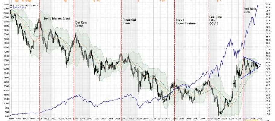 Los rendimientos del Treasury (bonos del tesoro americano) cayeron con fuerza, ante la búsqueda de refugio de los inversores. El bono a 10 años se acercó al 4,05%, en un contexto técnico que apunta a una continuación bajista. La elevada sobrecompra y las fuertes posiciones cortas, podrían acelerar el descenso si se rompe el nivel del 4%, replicando patrones históricos. Por lo que quizás sería interesante esta semana aumentar la exposicion al bono americano a 10 años en nuestras carteras.
